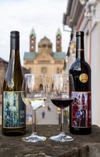 Es ist eine gute Tradition, dass Künstlerinnen und Künstler aus der Region Dommotive für die Etiketten der Weinflaschen liefern. So werden auch diese selbst zu einer Besonderheit. In den letzten drei Jahren waren die Flaschen mit Motiven des Dudenhofener Künstlers Oliver Schollenberger geschmückt. Auf den Etiketten für die neue Domwein-Edition befinden sich Motive der Speyerer Künstlerin Gerdi König, der es nach eigenen Worten darauf ankam, einerseits die Stärke und Kraft des alten romanischen Bauwerks einzufangen und ihm andererseits die Energie der heutigen Zeit mit ins Bild zu geben.