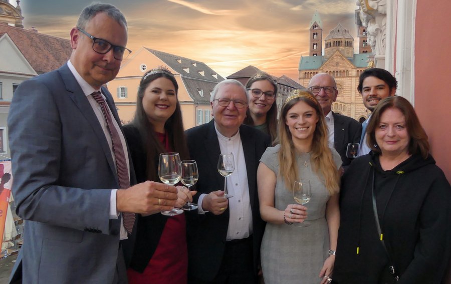 Die neuen Domweine, die es in der Dom-Info neben dem Dom, aber auch in vielen Geschäften gibt, sind ein trockener Riesling 2023 Deidesheimer Herrgottsacker vom Winzerverein Deidesheim und ein trockener Syrah 2022 vom Weingut Werner Anselmann. Beide Weine wurden auf charmante und fachkundige Art von der pfälzischen Weinkönigin Charlotte Weihl vorgestellt, die mit ihren Weinprinzessinnen Laura Götze und Hanna Spies zu der Domwein-Präsentation gekommen war.