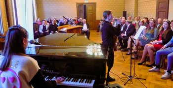 Der vielfach preisgekrönte Mundartdichter Matthias Zech, selbst seit vielen Jahren Mitglied des Dombauvereins, erfreute die Gäste mit heiter-besinnlichen Gedichten und Texten. Elena Arifi und Katharina Pohlmann, beide Schülerinnen der städtischen Musikschule, sorgten für die musikalische Umrahmung der beliebten Veranstaltung und erhielten für ihre Auftritte großen Beifall.